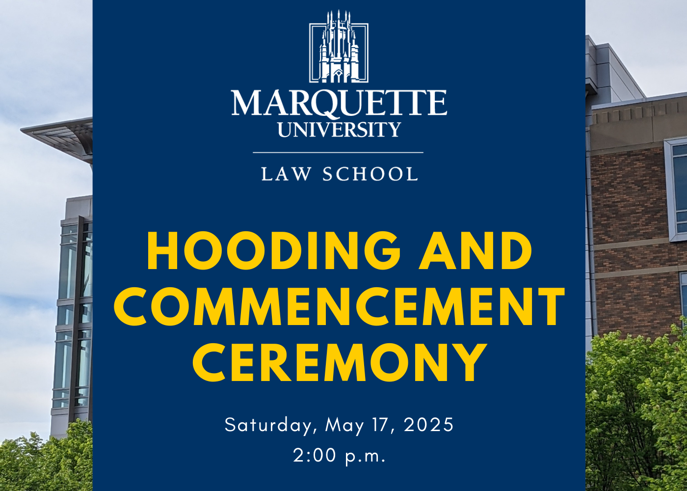 Marquette University Law School will celebrate the accomplishments of its fall 2024, and May and summer 2025 graduates the weekend of May 16-19, 2025. Find more commencement information here.